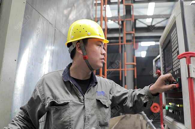 在为期近一个月的培训时间里,面对师傅从使用说明书的理论知识到机台面前的实践操作讲解,韩俊勤学、多问、苦练,一心一意强技能,努力不懈求,终于学有所成。回到公司,他便开始全面负责所在班组新设备——数控落地镗铣床的机加工镗铣操作。这款机器主要用来加工公司颚式破碎机、卧式旋回破碎机等设备各类机加工件,比如动颚、机壳、机体、轧辊、机架等大型工件。