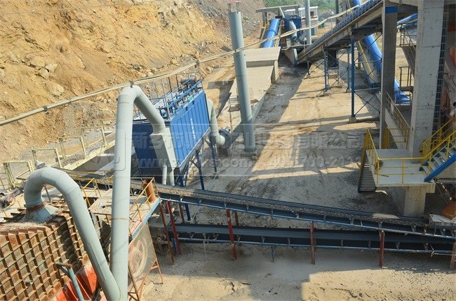 在制砂生产线中,常见的工艺流程是:使用爆破工具对适合机制砂生产的矿山进行爆破,将爆破出来的大块岩石通过给料机等喂料设备输入到颚式破碎机中,颚式破碎机通过设备内部的动颚和静颚的挤压作用,对大块物料实行初步的粗碎;粗碎后的物料粒度基本均匀,然后再由胶带传输设备的作用,被输送至反击式破碎机,在这里,反击式破碎机利用冲击能对物料进行进一步的破碎和深加工,并对物料进行适当的修整,经反击式破碎机反复作用后的物料已经基本能够满足机制砂的加工要求。再由制砂机对物料实行后的加工,终通过振动筛的筛分作用,将不同粒度大小的砂石骨料进行区分,以满足不同的工业加工需求。