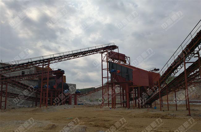 三、细碎后的物料被输送到两道并筛中进行筛分,筛分出五种不同规格的成品料,由输送带送到成品料堆。成品粒度可按用户的需求进行组合和分级。