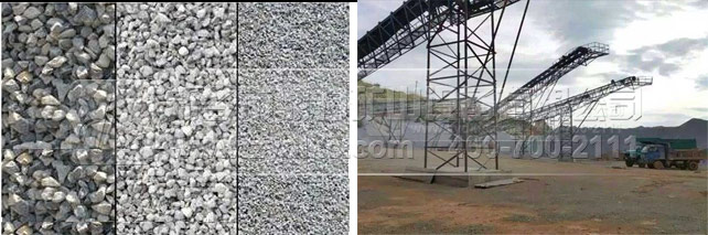 在砂石骨料生产线中,不同粒径的成品料从不同的输送带上输出,我们可以将粗细不同的成品料按照合适的比例掺和在一起,达到规范的成品料级配。
